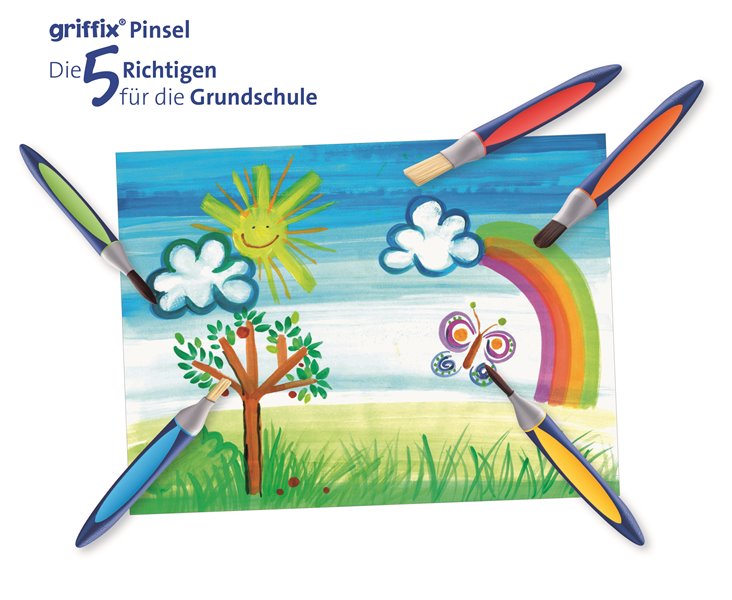 De nye griffix® pensler sørger for at grunnskoleelever får det ideelle utstyret til kunstundervisningen på skolen. Maleoppgavene utføres trygt med de fem vinnermodellene. Alt i samsvar med skolens læreplan – for å male overflater, prikker og linjer.