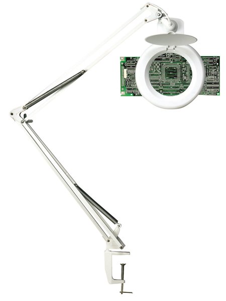 Zoom lupelampe er en ideell lampe for funksjonelt lys og forstørrelse – når du trenger ekstra presisjon og nøyaktighet. Den parallelførte og fjærbelastede armen holder lampehodet horisontalt i forhold til objektet – også når du flytter armen. Armlengde på 100 cm gir stor fleksibilitet. Leveres med av/på-bryter på lampehodet samt bordklemme med 55 mm grep. Beskyttelsesglass over selve sirkellysrøret. Utstyrt med en 3-diopter glasslinse som gir 1,75 ganger forstørrelse. Elektronisk omformer integrert i lyskilden. LED 6W